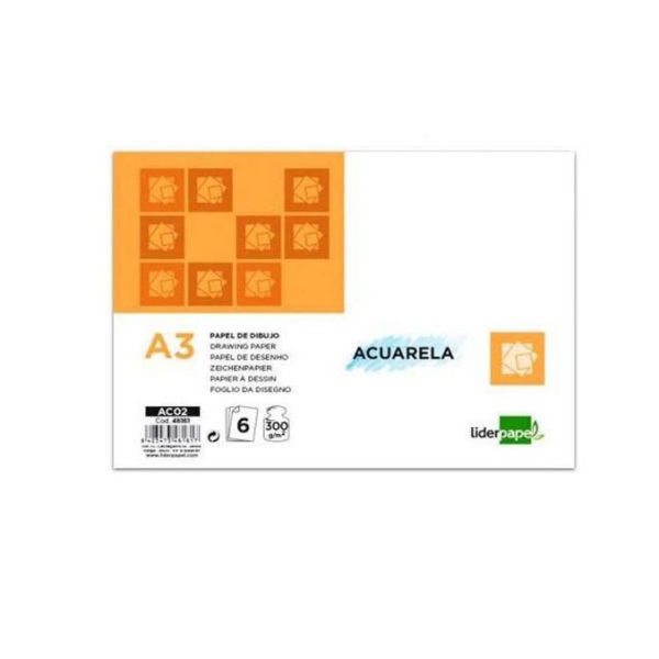 Papel Aguarela Liderpapel Din-A3 300 Gr- Pack de 6 Folhas