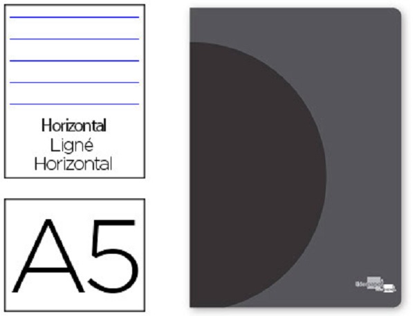Caderno agrafado liderpapel 360 capa de plastico din a5 48 f 90 gr pautado com dupla margem capa preta.