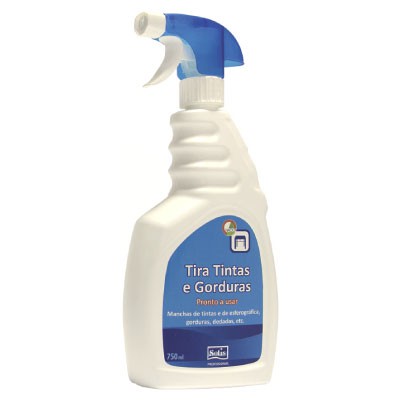 Detergente em spray eficaz na remoção de tintas, manchas de esferográfica, gorduras ou dedadas em mesas escolares, bancadas ou superfícies de trabalho.